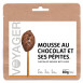 | Ingrédients | Mousse au chocolat (chocolat en poudre 53.5 % (sucre, cacao en poudre) , pépites de chocolat 10 % (pâte de cacao, sucre, émulsifiant: lécithine de soja, beurre pâtissier), matière grasse végétale hydrogénée, gélifiants : E516, E450, E404, E460, E401, E500, lactose et protéines de lait, amidon transformé, cacao maigre en poudre, sucre, colorant: caramel, émulsifiant (E472a), lait entier en poudre (émulsifiant: lécithine de soja 0.2 %)). |