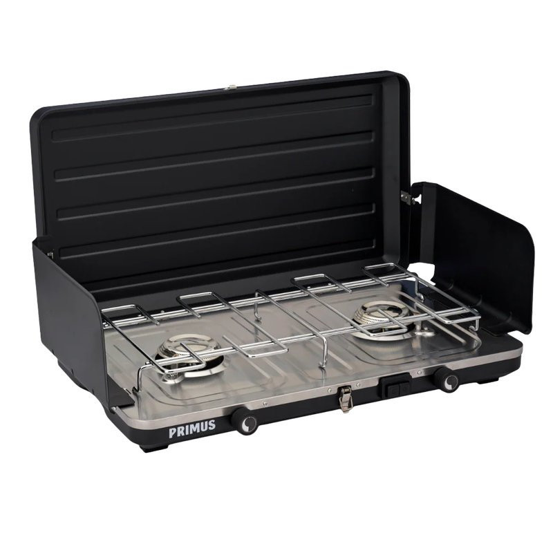 Il dispose de deux brûleurs avec réglage indépendant, permettant de préparer plusieurs plats en parallèle. L’allumage piezo intégré facilite la mise en route, tandis que les pare-vents assurent une bonne stabilité de flamme.
